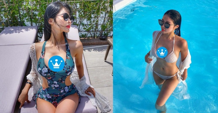 嫩模泳裝好大膽!上面深V「下面也深V」...爆乳開高岔小意思!