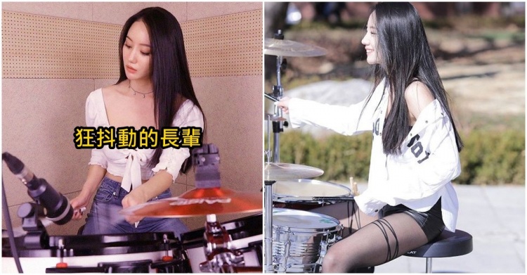 长腿正妹鼓手藏隐乳!用力打鼓「嫩乳跟着音乐上下晃动」